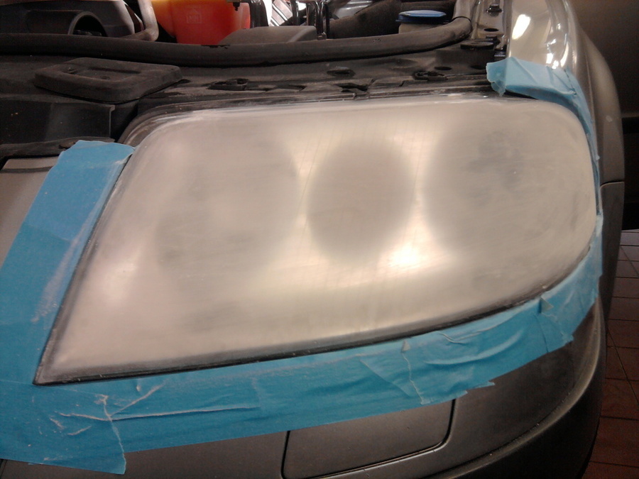 Proces renovace světlometů - cena renovace jednoho světlometu je 700 kč